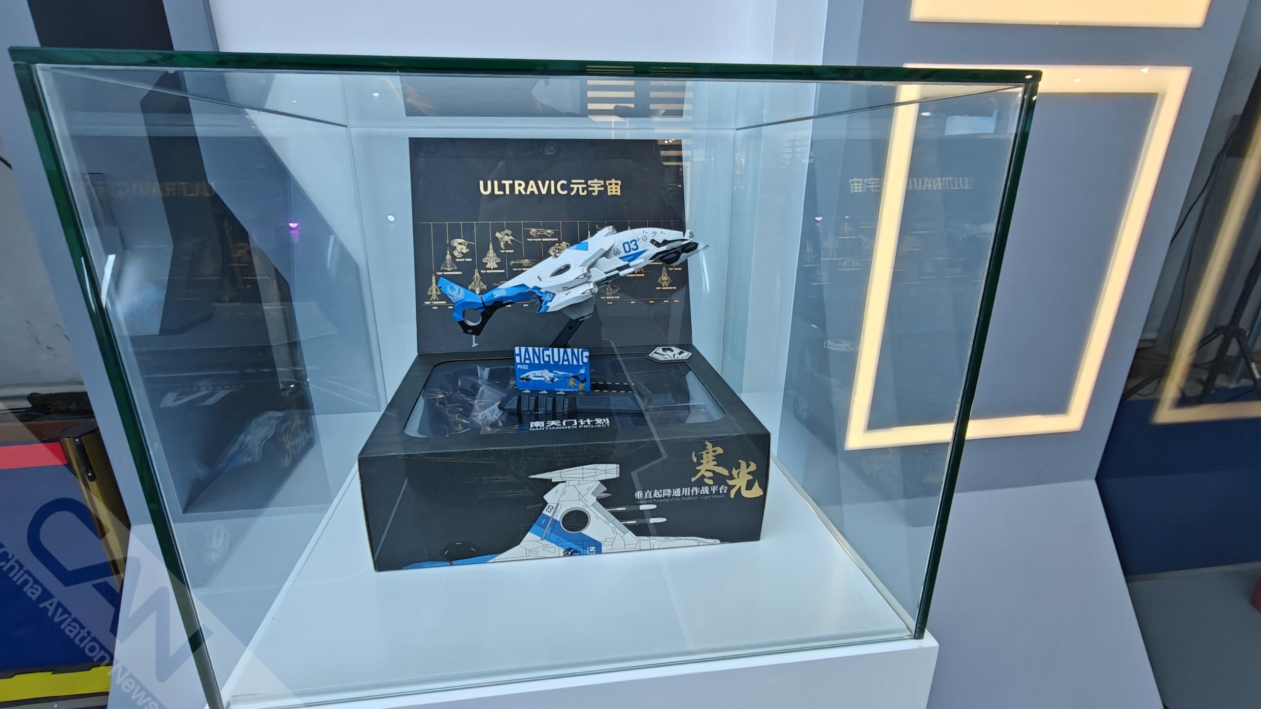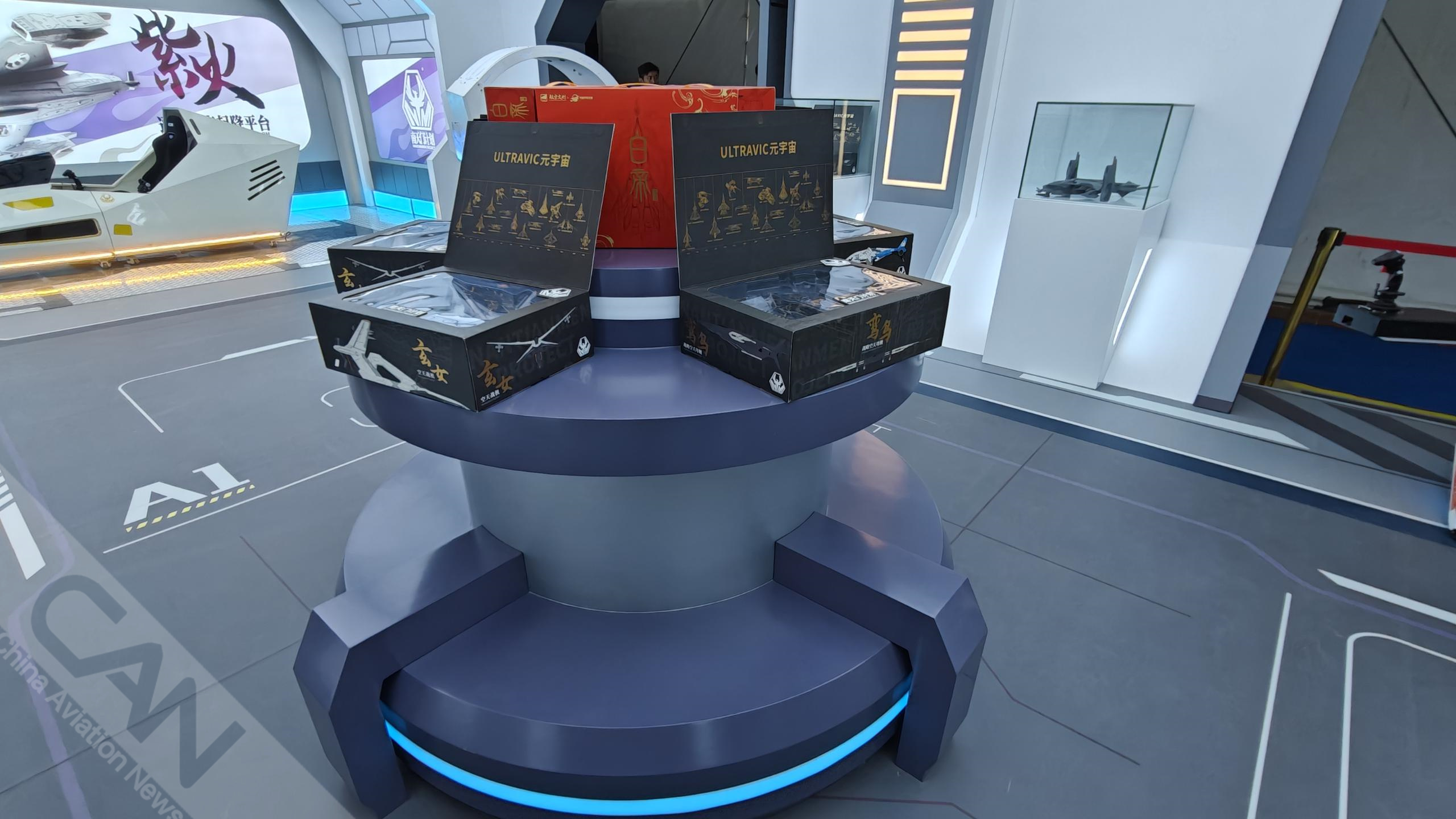科幻IP“南天門計劃”亮相第七屆天津直博會,除首次展出的新機型“紫火”概念戰機模型外,還展出一系列科幻產品。攝影:蓋宇斌