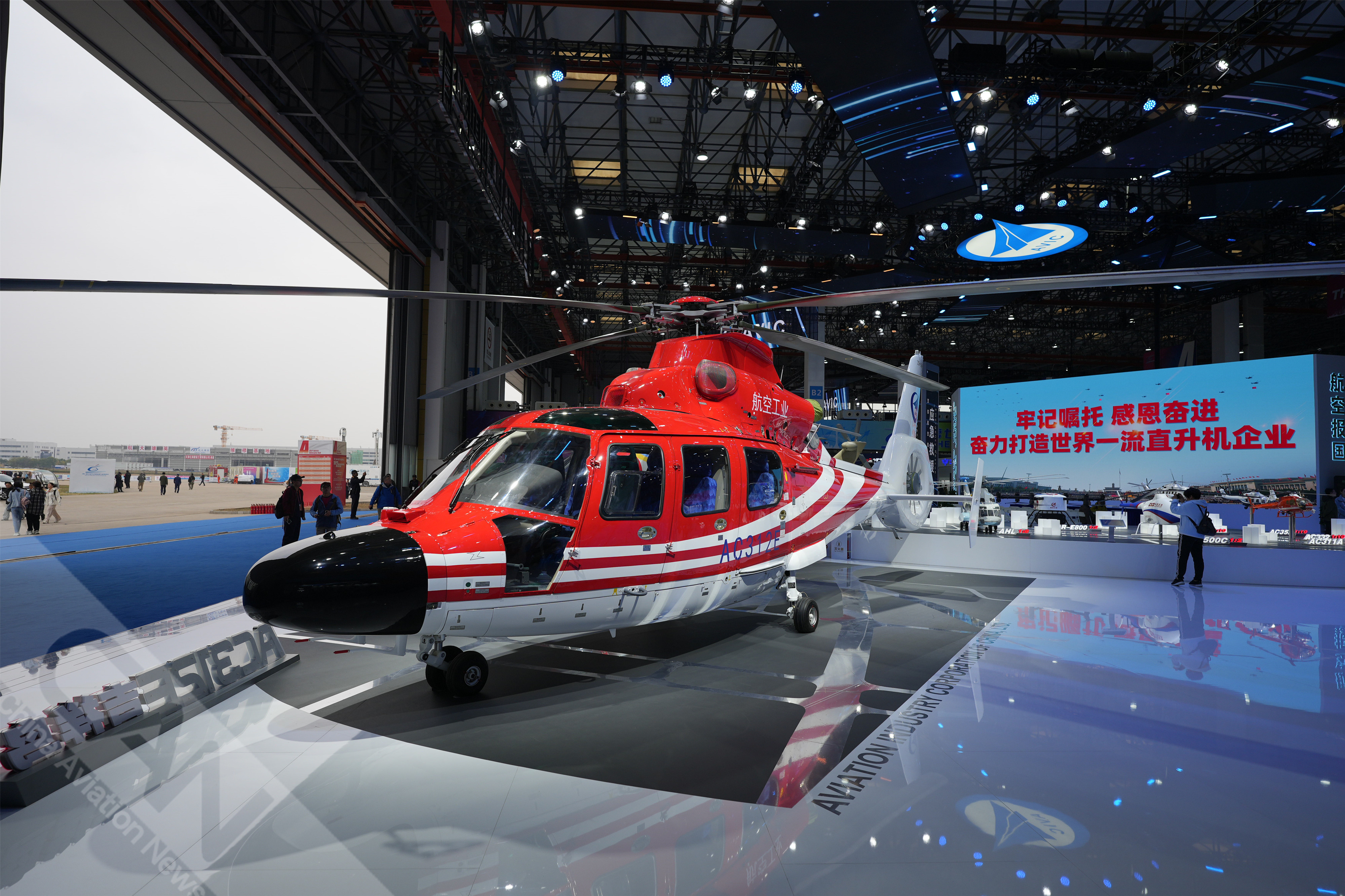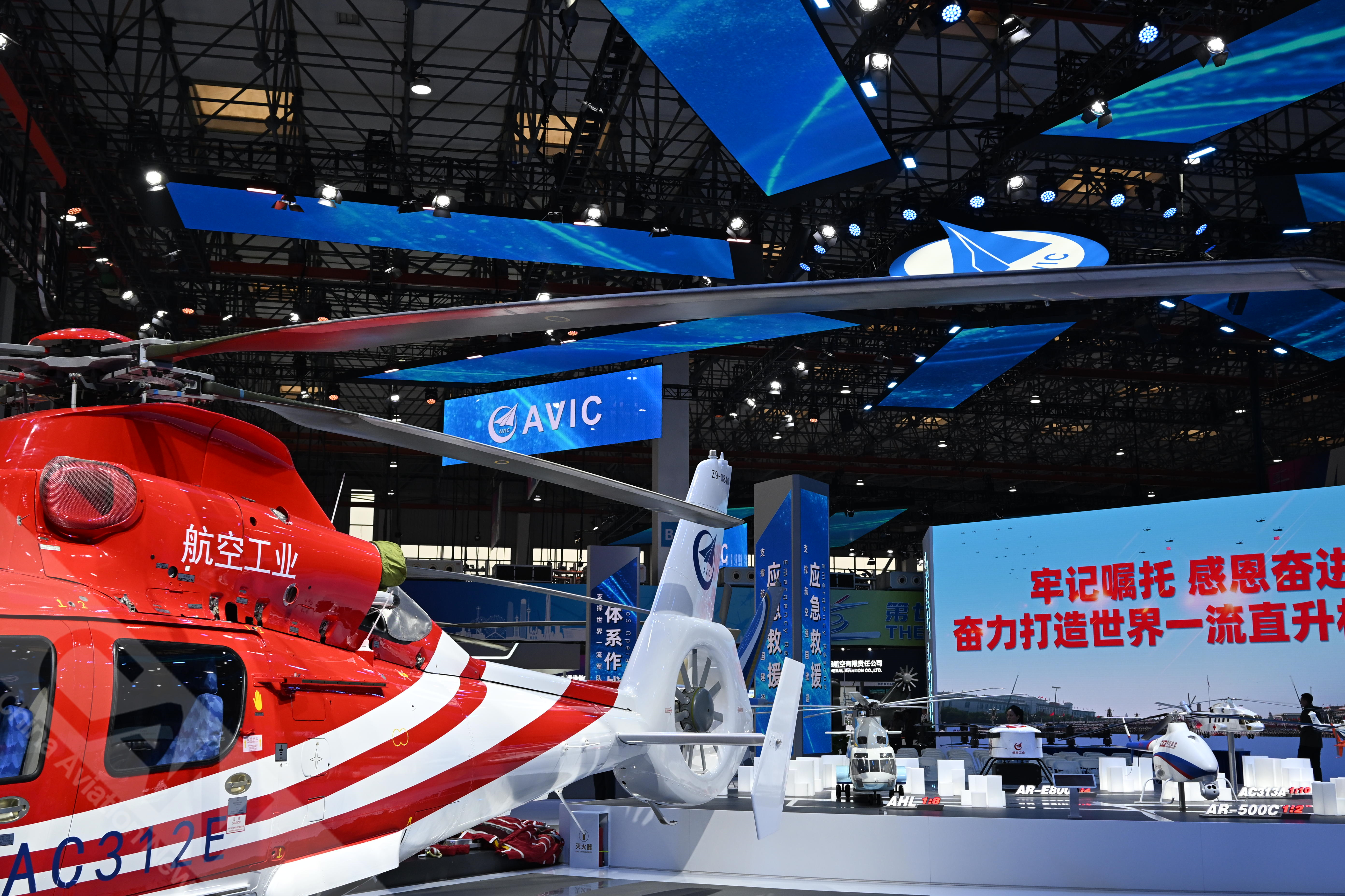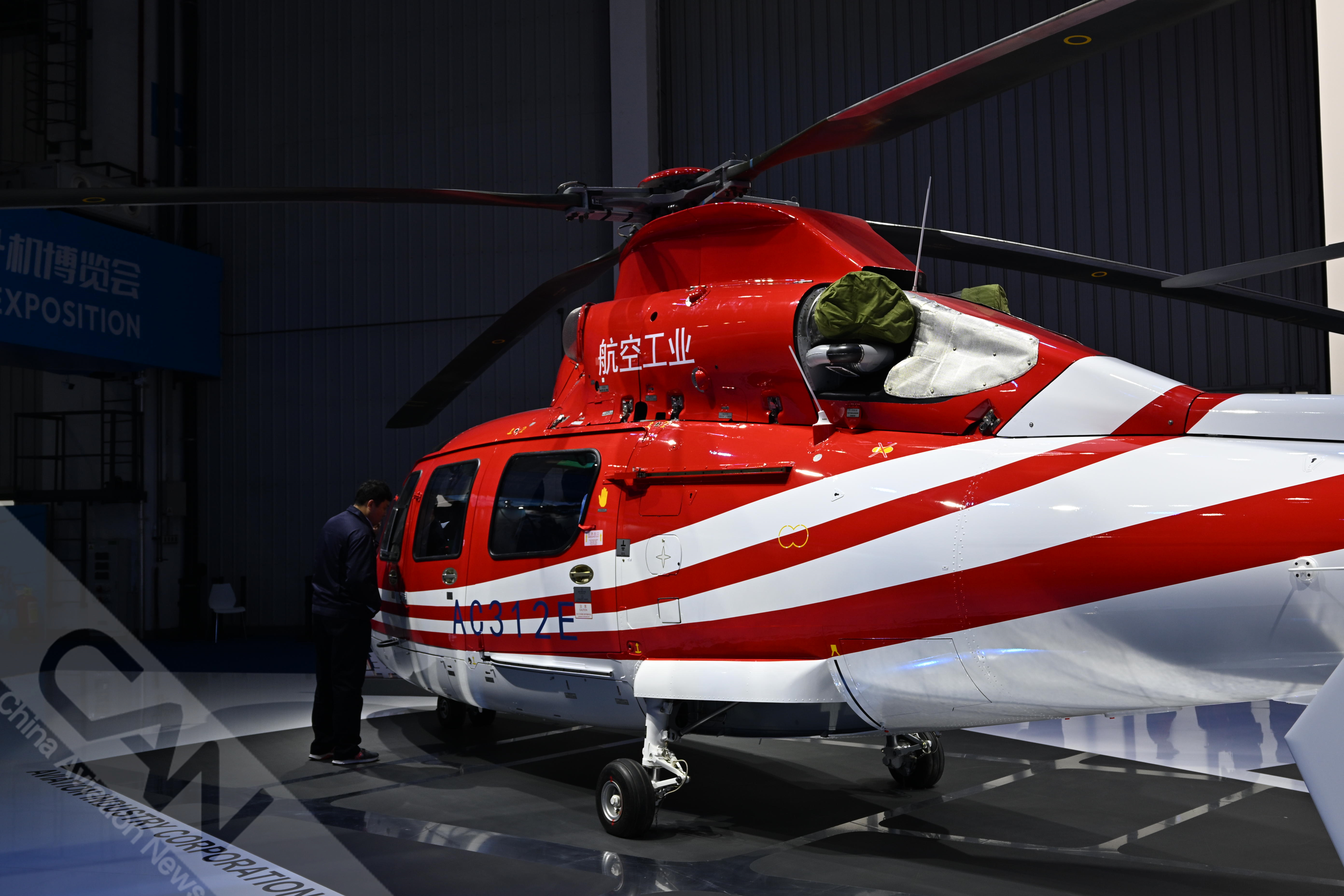 AC312E亮相第七屆天津直博會室內(nèi)展館。AC312E是航空工業(yè)集團響應(yīng)國家通航產(chǎn)業(yè)發(fā)展研制的雙發(fā)多用途直升機。攝影:吳紫磨