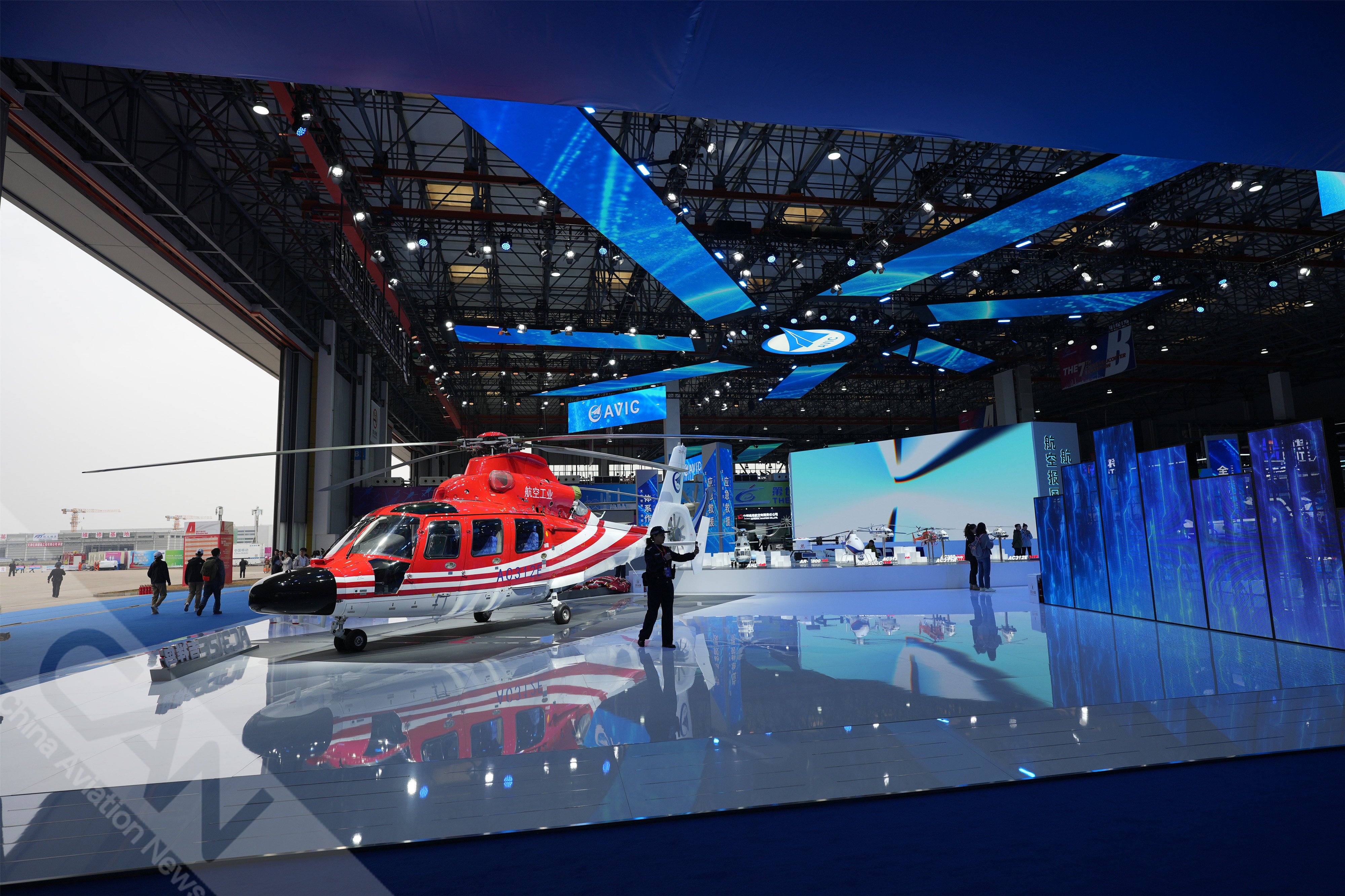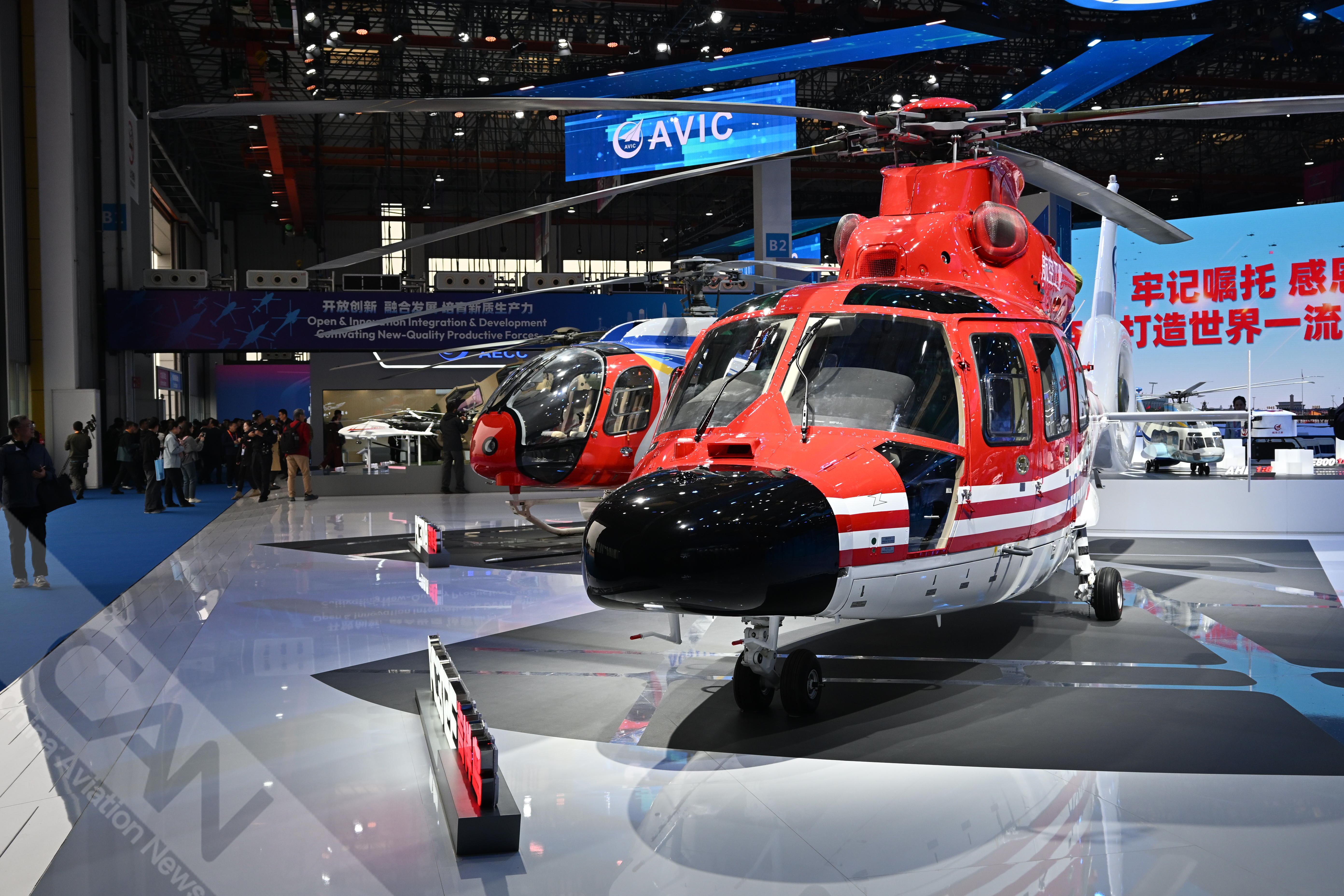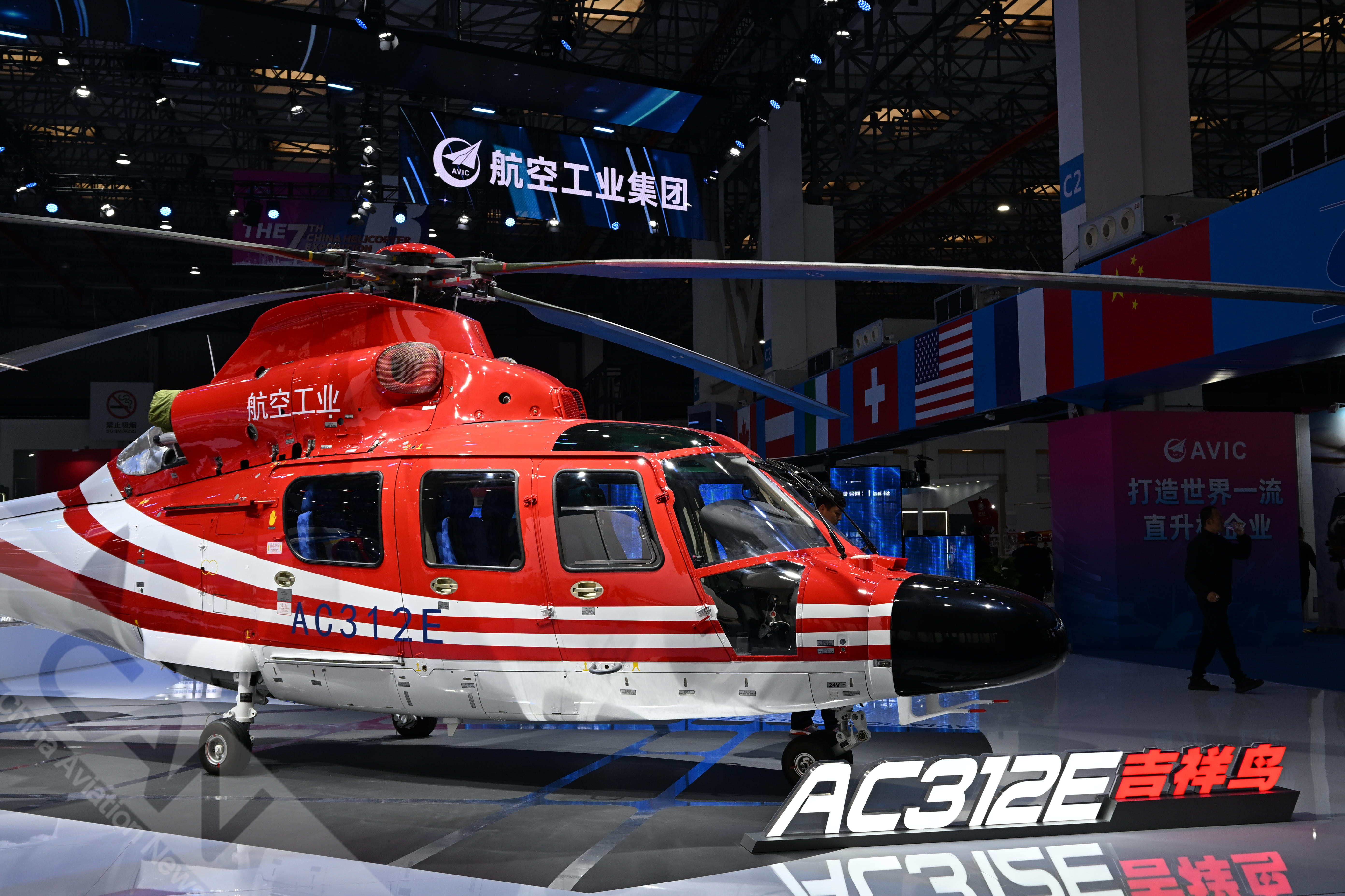 AC312E亮相第七屆天津直博會室內(nèi)展館。AC312E是航空工業(yè)集團響應(yīng)國家通航產(chǎn)業(yè)發(fā)展研制的雙發(fā)多用途直升機。攝影:吳紫磨