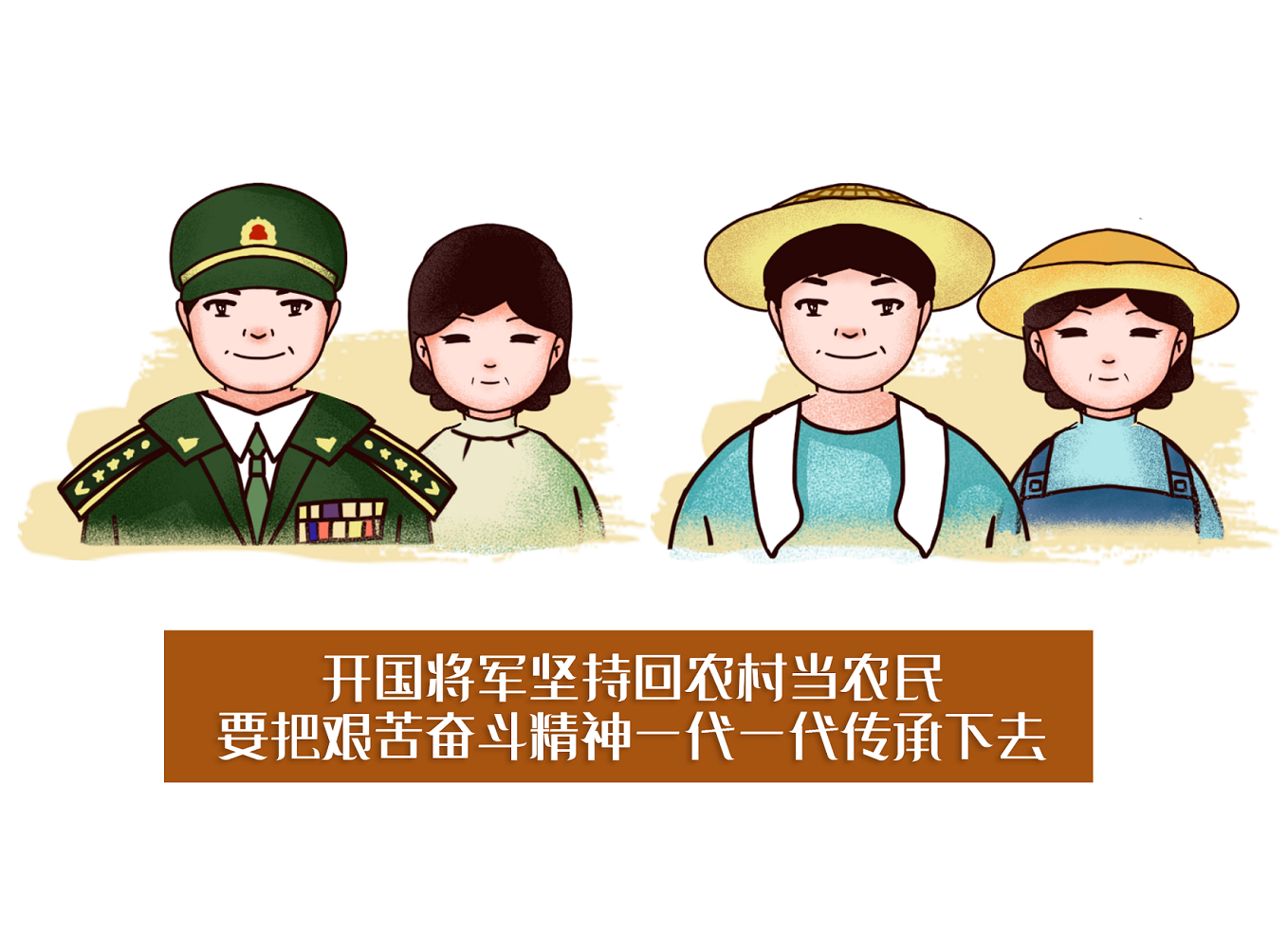 1957年8月,在被授予少將軍銜后不到兩年,甘祖昌主動向組織上辭去新疆軍區(qū)后勤部長職務(wù),帶著妻子龔全珍,回家鄉(xiāng)江西省蓮花縣坊樓鄉(xiāng)沿背村務(wù)農(nóng)。甘祖昌將每月工資幾乎全捐獻出來,用于修電站、建學(xué)校、救濟貧困戶。